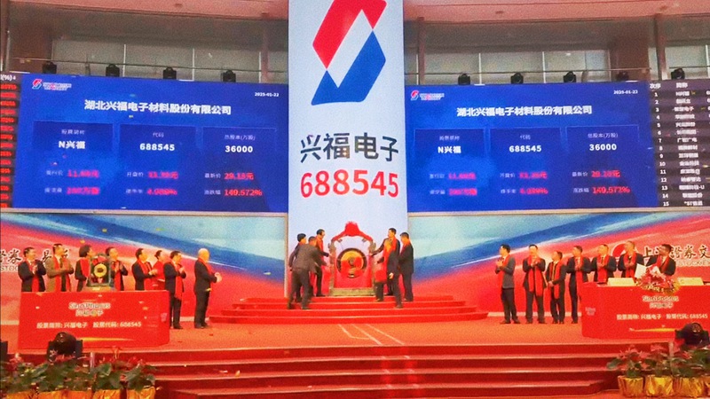1月22日,長江產(chǎn)業(yè)集團(tuán)旗下母基金參股多支基金投資的湖北興福電子材料股份有限公司(簡稱“興福電子”,股票代碼:688545.SH)成功在科創(chuàng)板掛牌上市,成為2025年度湖北省首家A股上市企業(yè)。本次發(fā)行募集資金總額11.68億元,發(fā)行價(jià)11.68元/股,首日收盤價(jià)27.39元/股,漲幅134.5%。